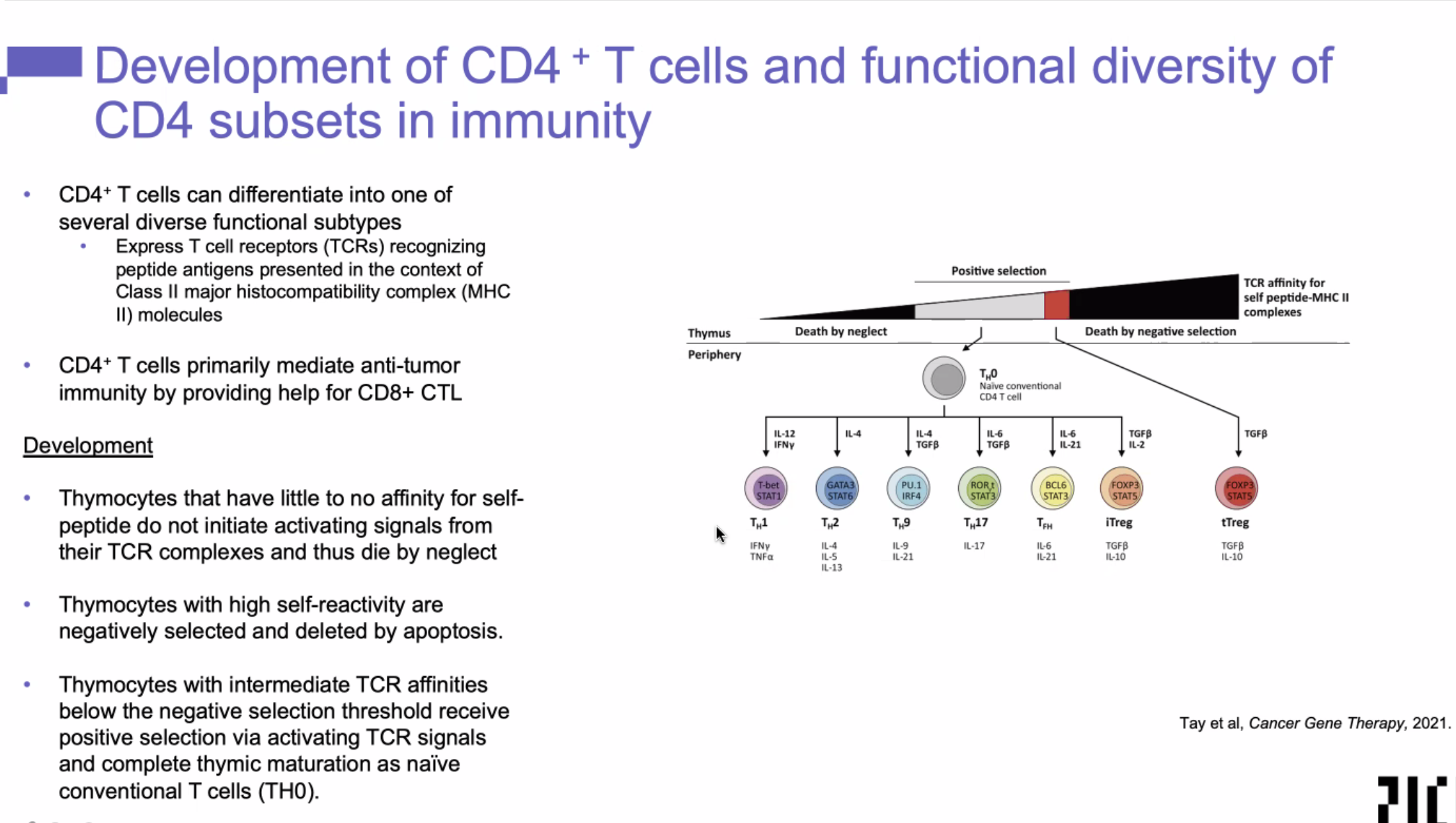 - Thymocytes may or may not have affinity for self-peptide(???) causing selection. High self-reactivity neg selected, killed by apoptosis. With little affinity, they die by neglect. But "intermediate TCR affinities....lead to positive selection"