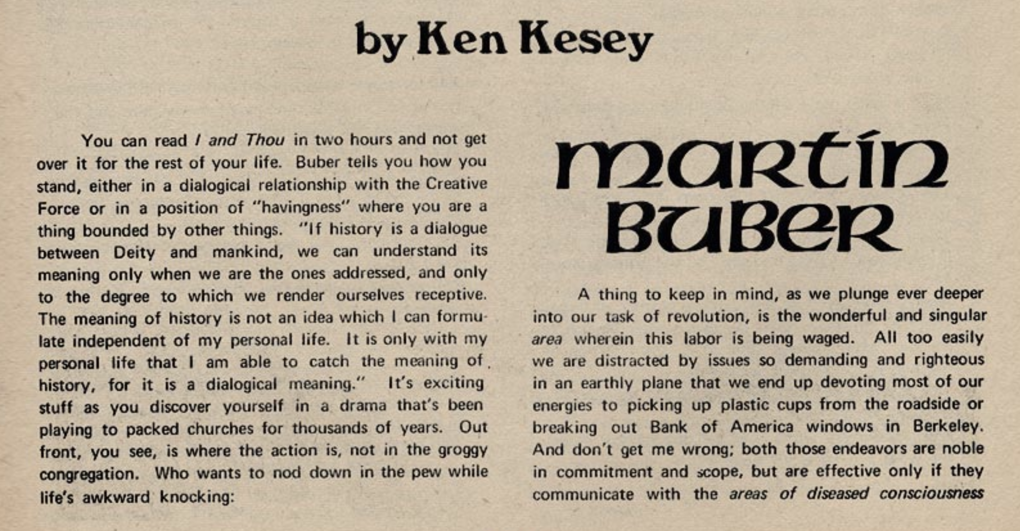 - Despite my Jewish background, I think I found I and Thou via the Whole Earth Catalog and Ken Kesey: